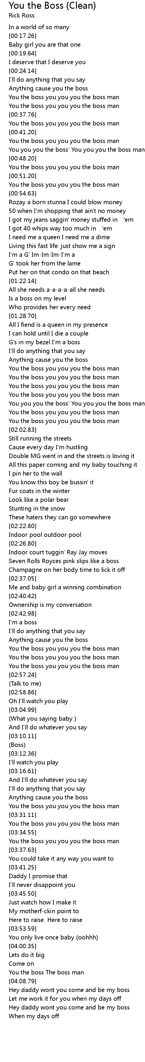 | [01:52.89] | You you you the boss' You you you the boss man |