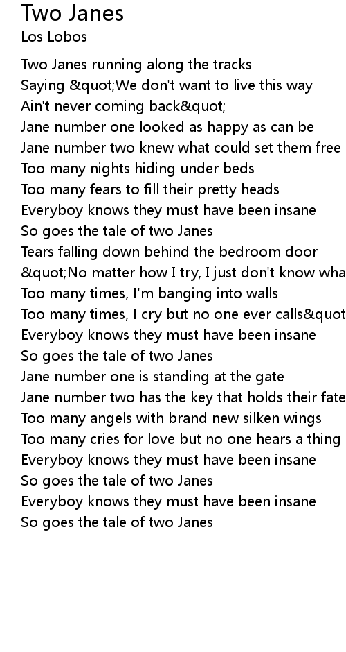 | So goes the tale of two Janes |