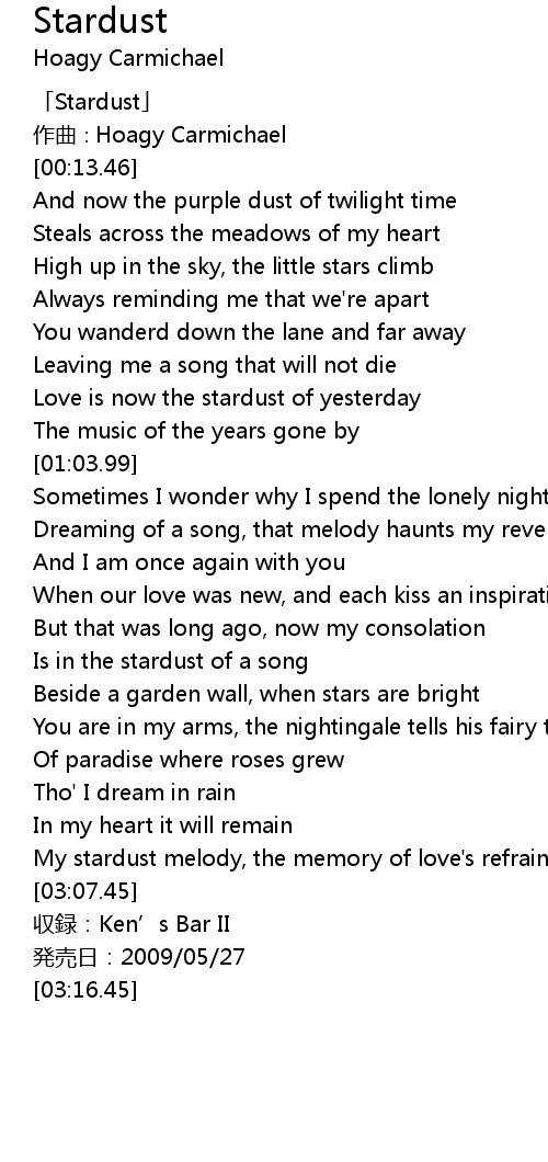 | [02:53.92] | My stardust melody, the memory of love' s refrain |