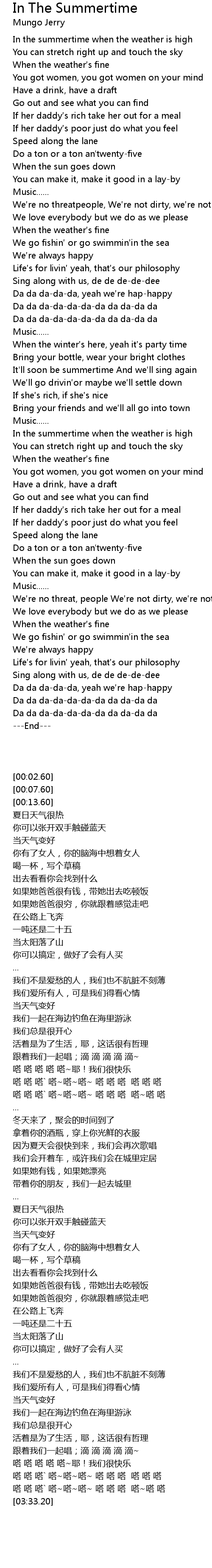 | [02:26.70] | In the summertime when the weather is high |