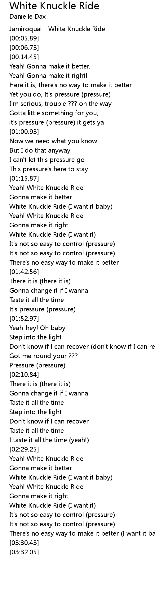White Knuckle Ride (I want it) |