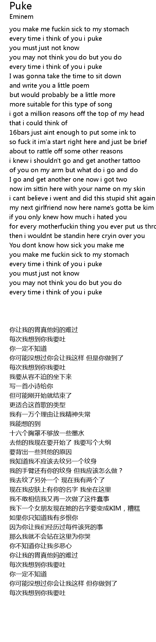 every time i think of you i puke |