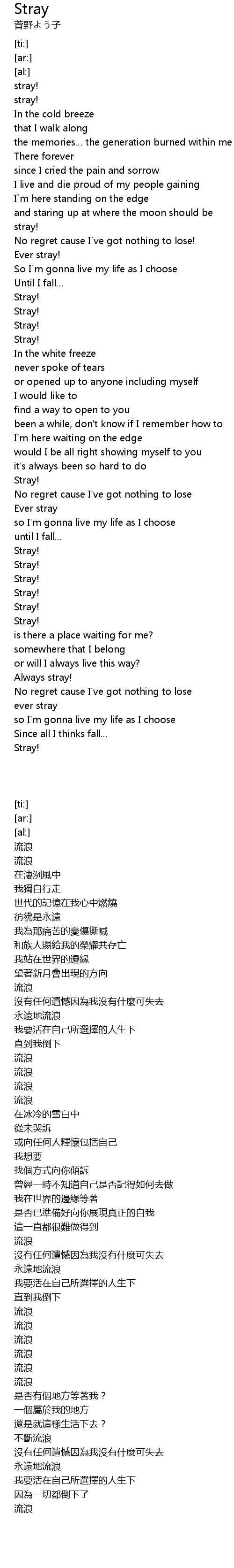 | [00:00.00] | stray! |