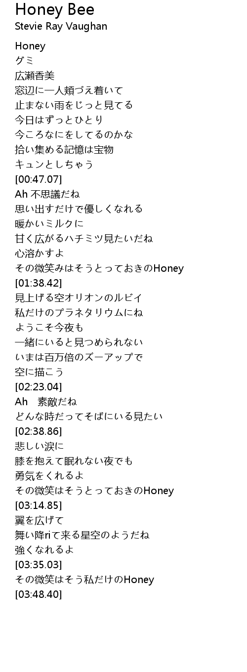| [03:36.48] | その微笑はそう私だけのHoney |