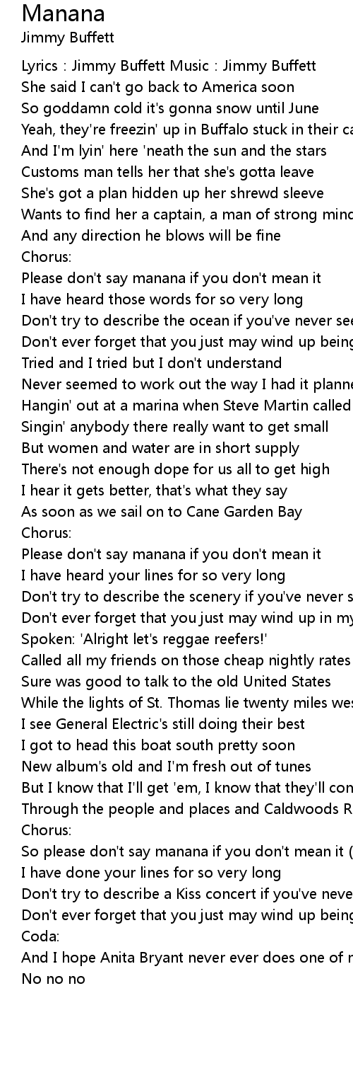 | Lyrics: Jimmy Buffett Music: Jimmy Buffett | |
