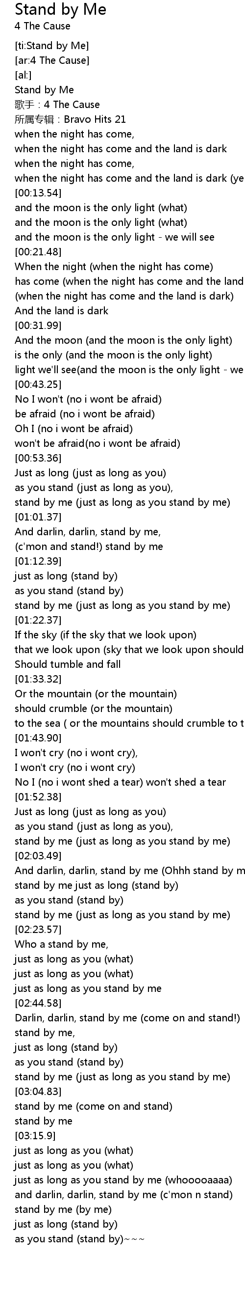 | [02:20.62] | stand by me just as long as you stand by me |