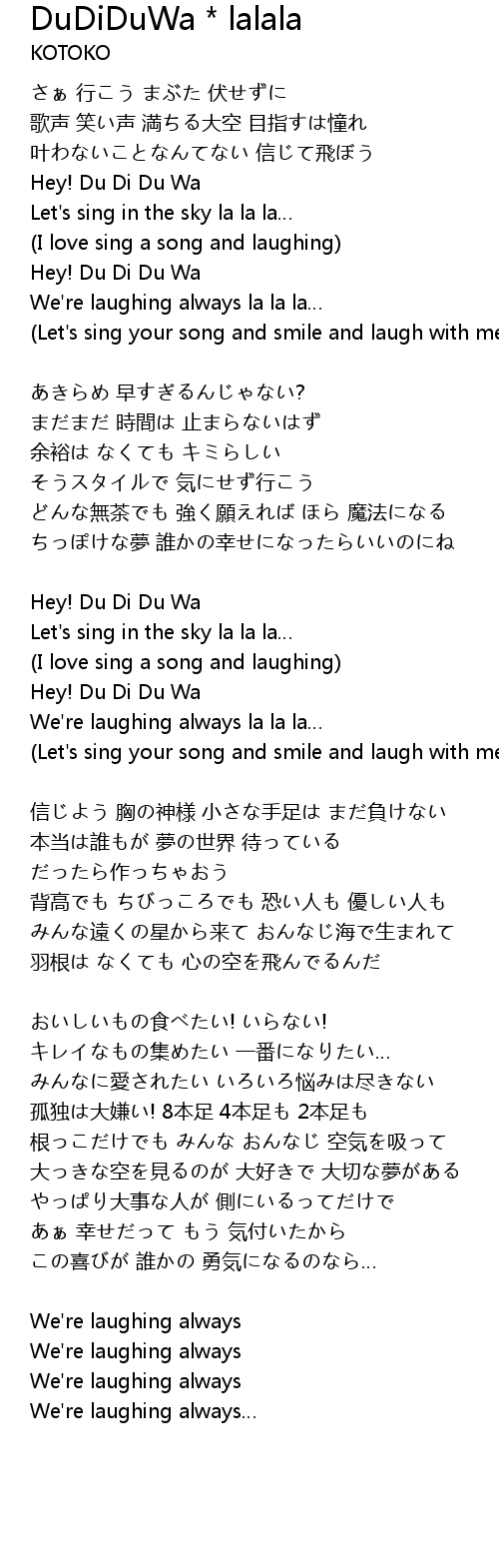 | 歌声 笑い声 満ちる大空 目指すは憧れ | |