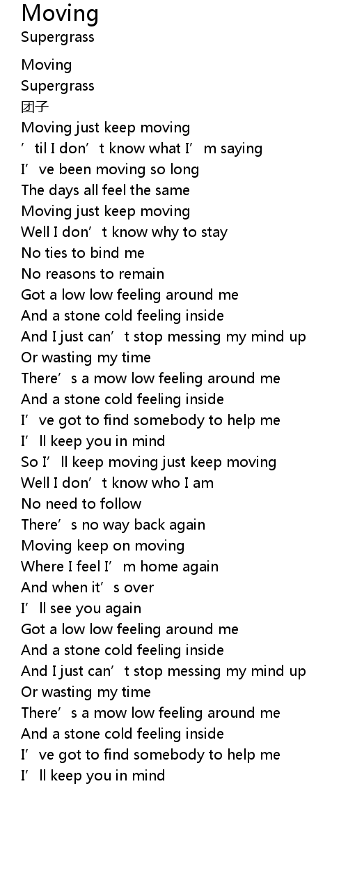 | [00:36.65] | Moving just keep moving |