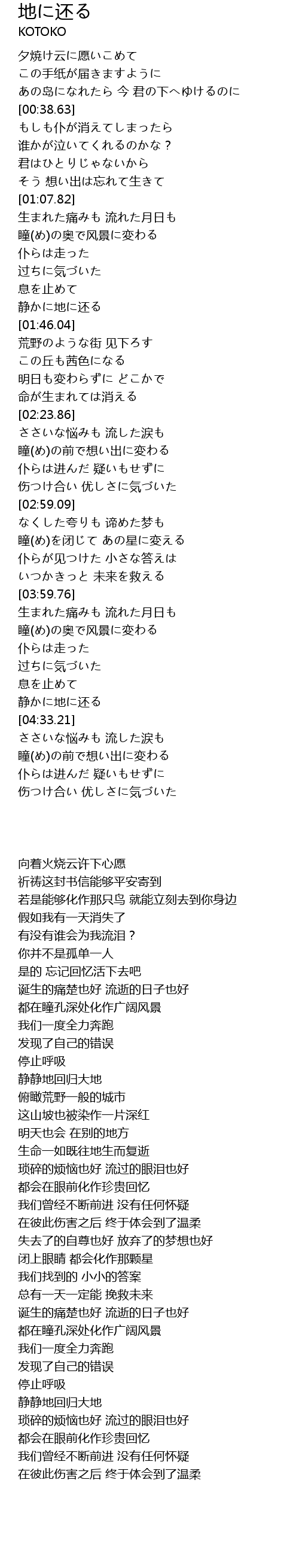 | [04:25.60] | 静かに地に还る |