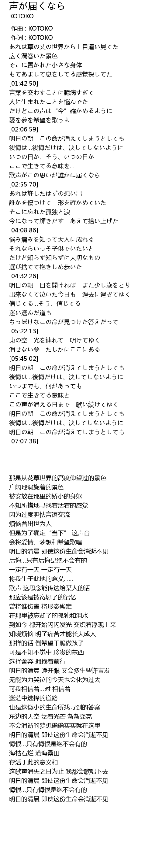 | [02:41.91] | 歌声がこの思いが誰かに届くなら |