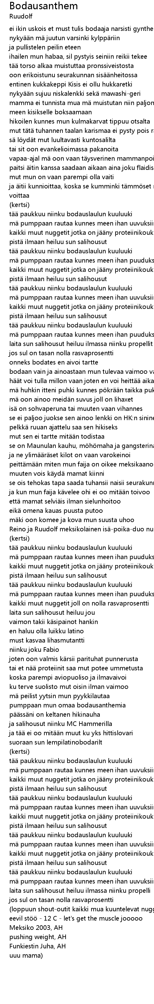 | tää paukkuu niinku bodauslaulun kuuluuki | |