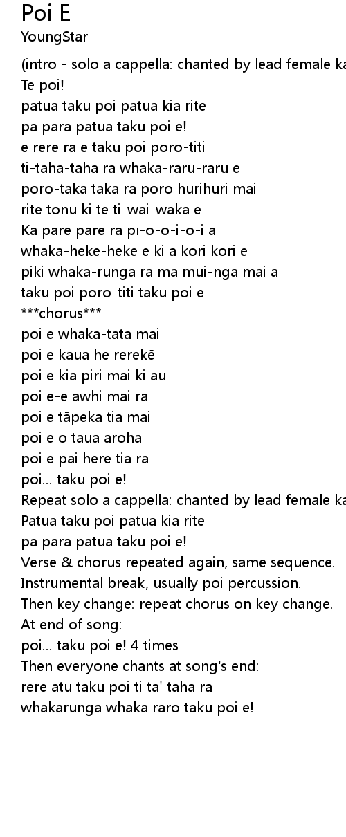| Repeat solo a cappella: chanted by lead female kaea. | |