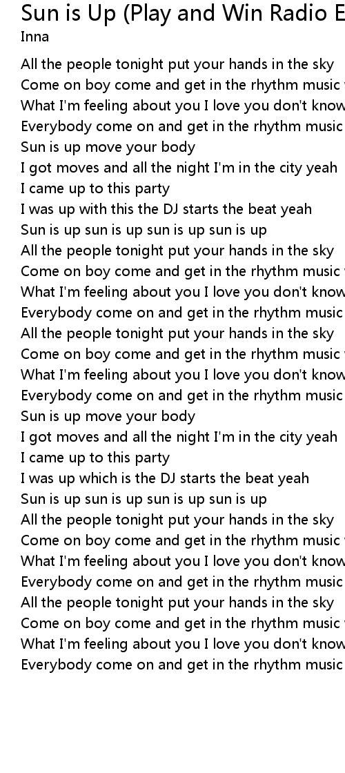 Sun is Up (Play and Win Radio Edit) Lyrics