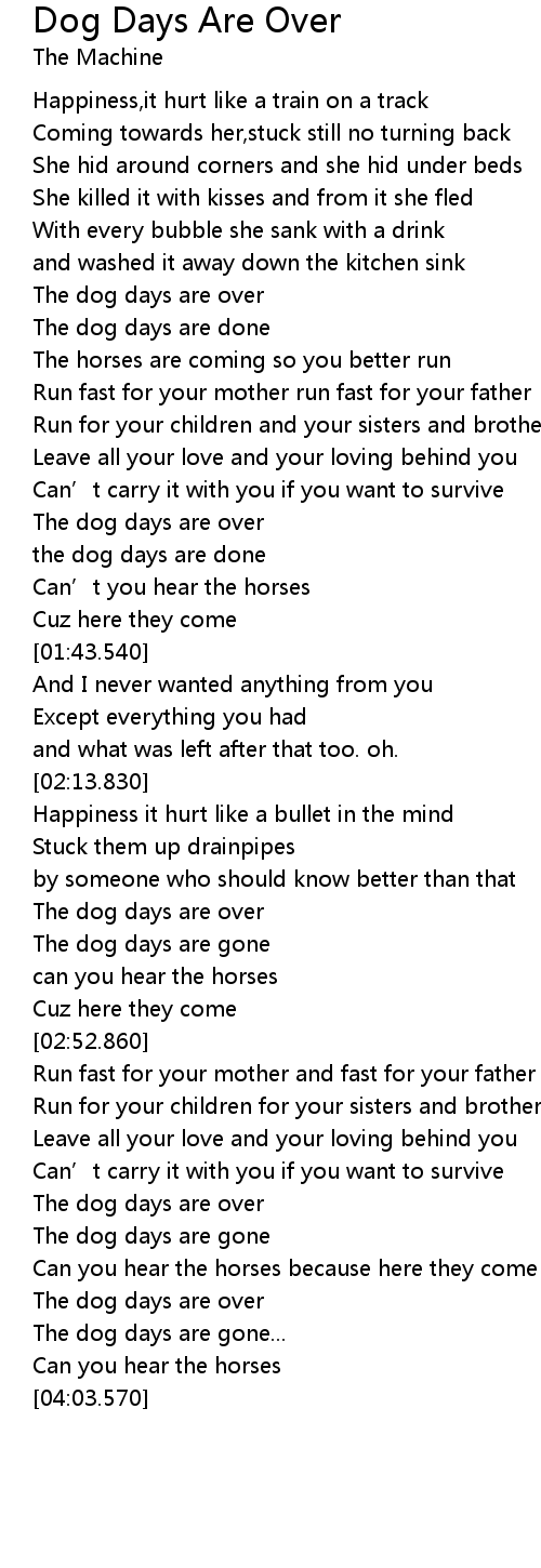 | [03:34.500] | The dog days are over |