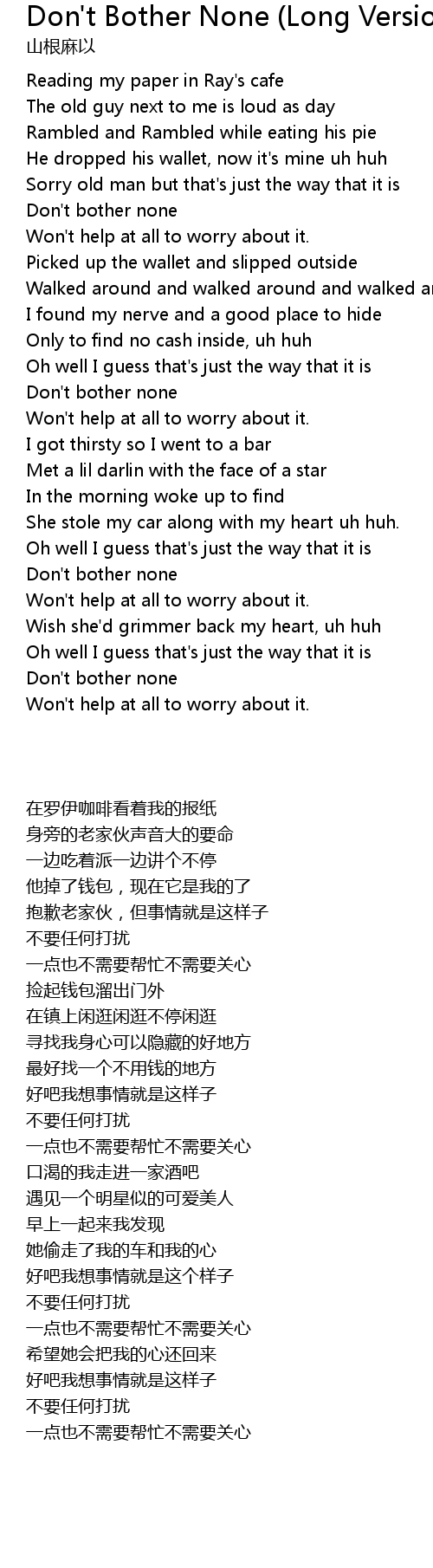 Don't bother none |