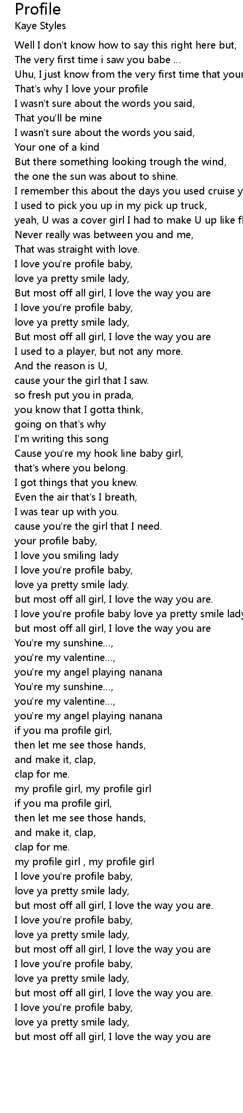 | I love you're profile baby love ya pretty smile lady, | |
