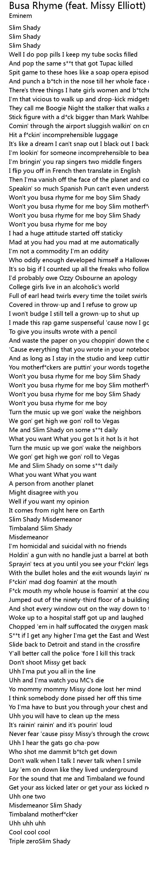 Won't you busa rhyme for me boy Slim motherf*ckin' Shady |