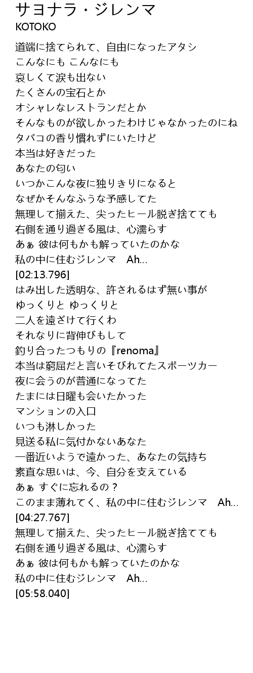 | [05:13.840] | 無理して揃えた、尖ったヒール脱ぎ捨てても |