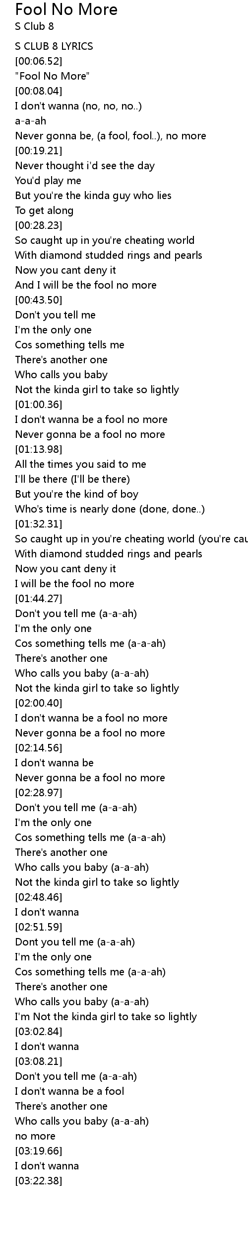 I don't wanna be a fool no more |