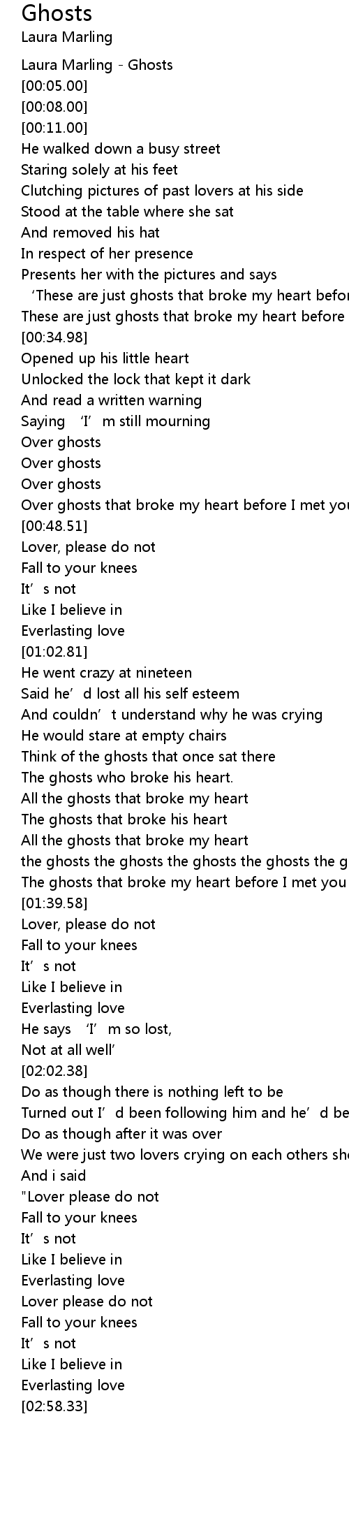 | [00:30.69] | These are just ghosts that broke my heart before I met you' |