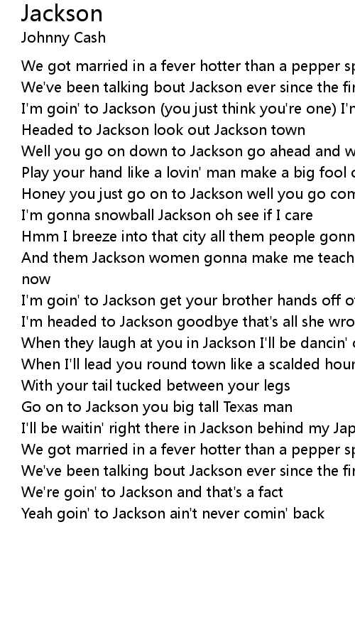 I'm goin' to Jackson (you just think you're one) I'm gonna mess around |