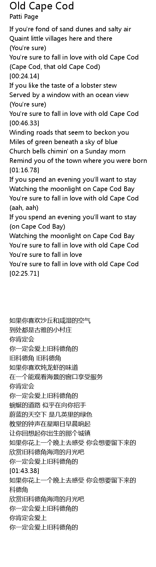 (Cape Cod, that old Cape Cod) |