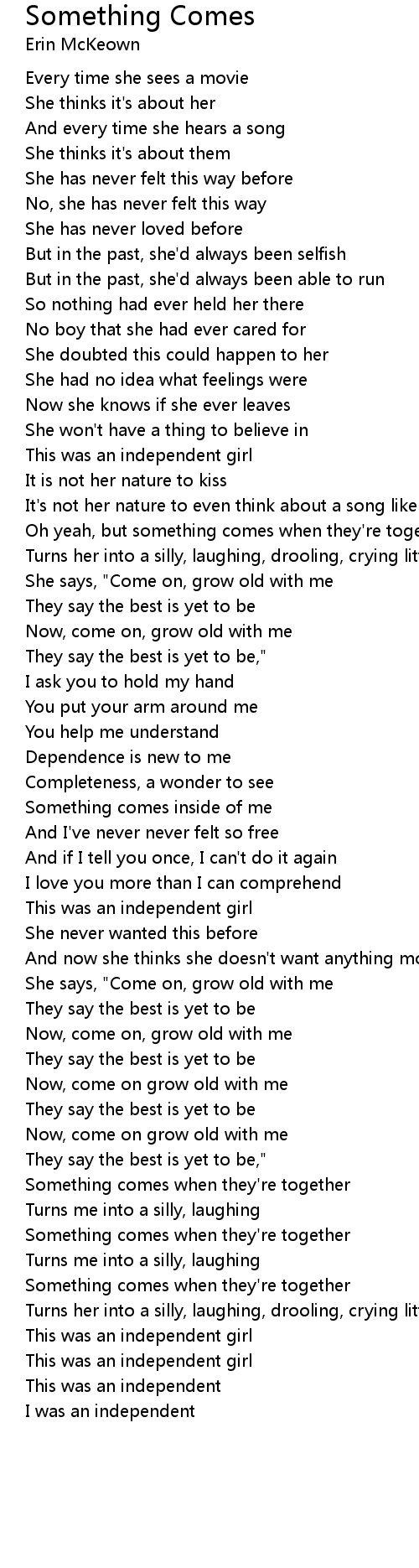 Oh yeah, but something comes when they're together |