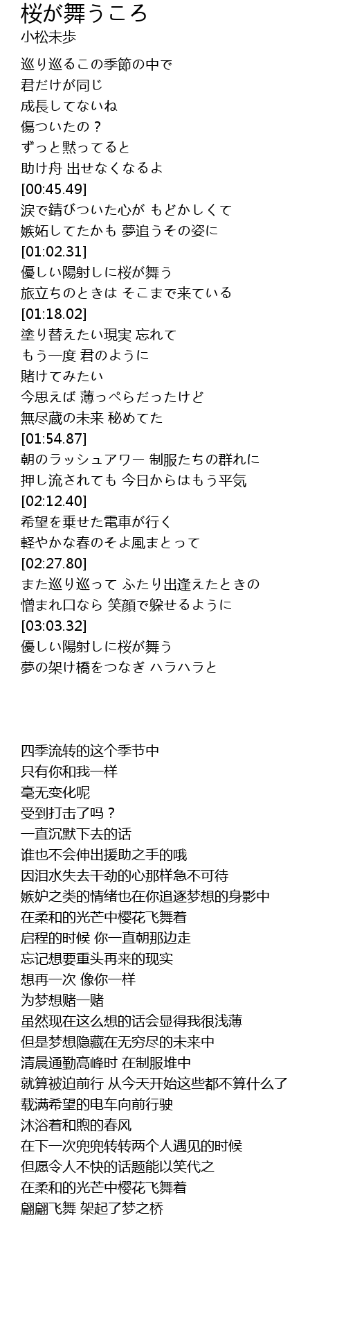 | [03:04.02] | 優しい陽射しに桜が舞う |