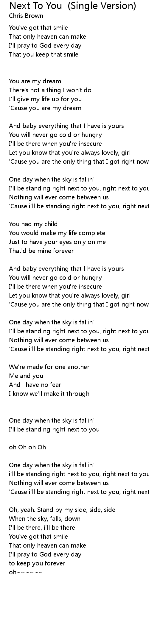 i'll be standing right next to you, right next to you |