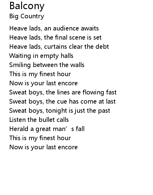 | [00:28.00] | Heave lads, curtains clear the debt |