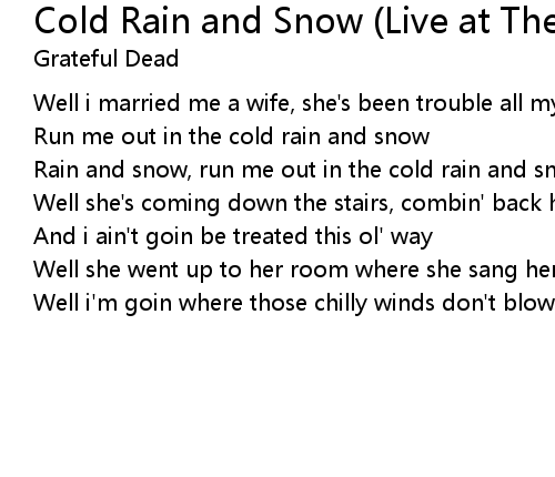 | Rain and snow, run me out in the cold rain and snow | |