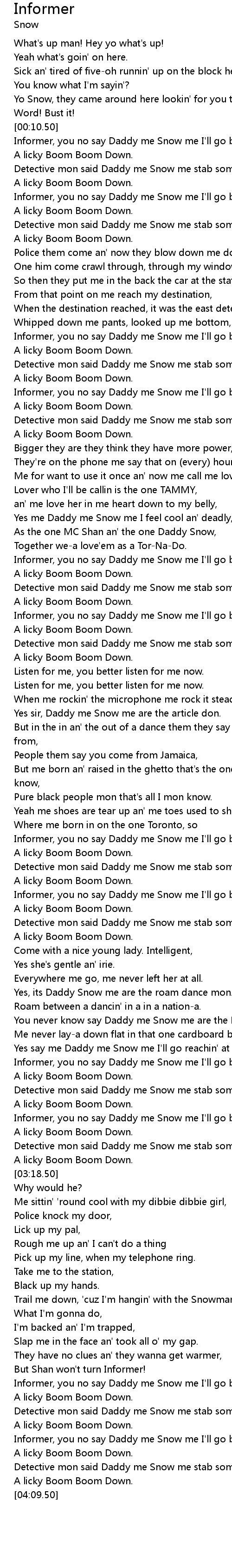 Informer, you no say Daddy me Snow me I'll go blame, |