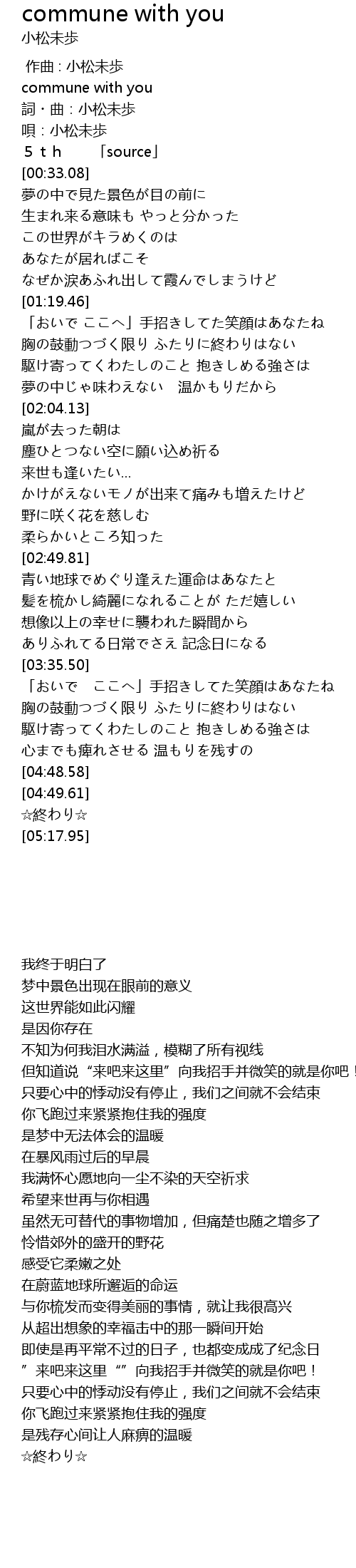 | [02:50.35] | 青い地球でめぐり逢えた運命はあなたと |