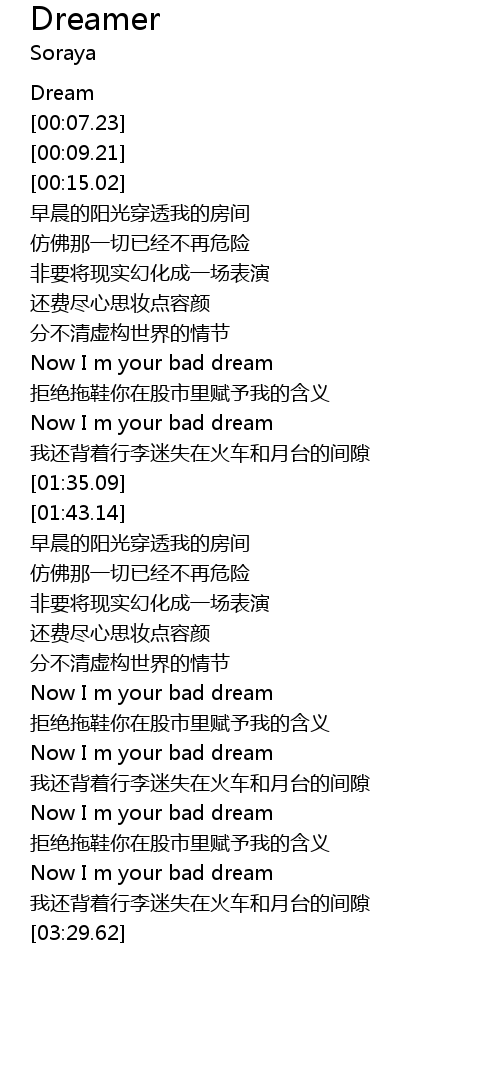 | [03:19.90] | 我还背着行李迷失在火车和月台的间隙 |