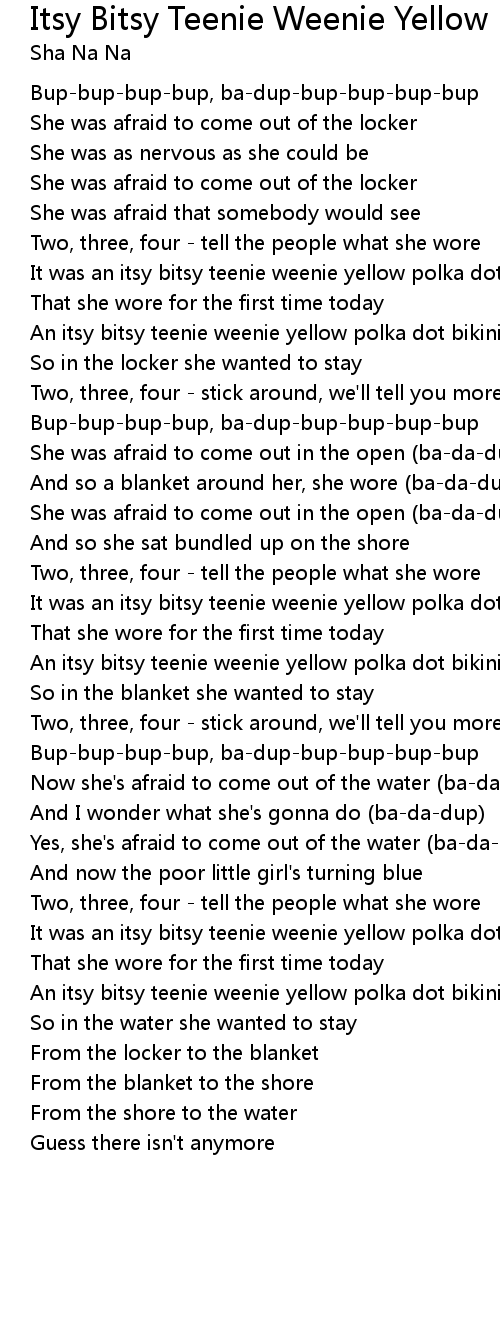 It was an itsy bitsy teenie weenie yellow polka dot bikini |