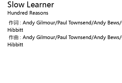 | [00:00.000] | zuò qǔ : Andy Gilmour Paul Townsend Andy Bews Colin Doran Larry Hibbitt |
