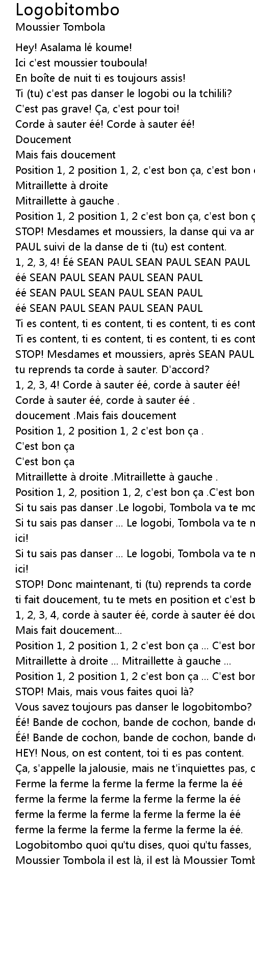 | Ti tu c' est pas danser le logobi ou la tchilili? | |