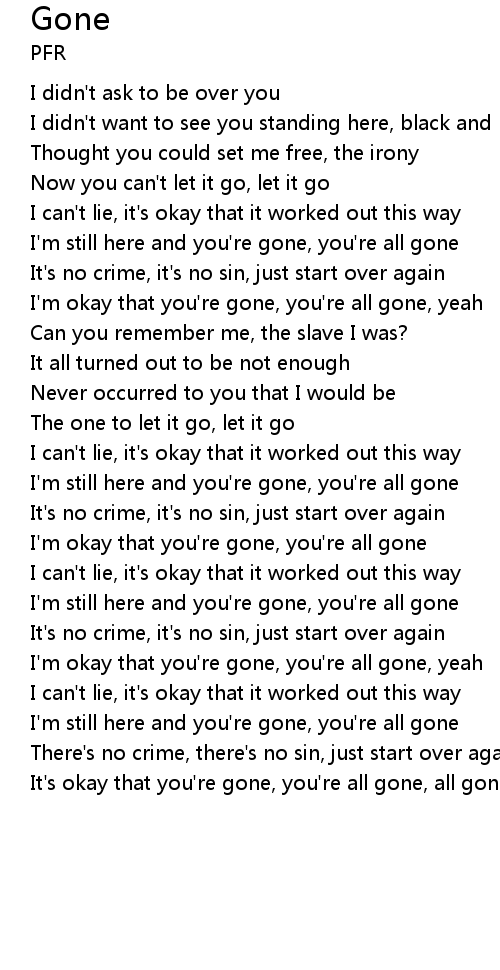 It's okay that you're gone, you're all gone, all gone, all gone, yeah |
