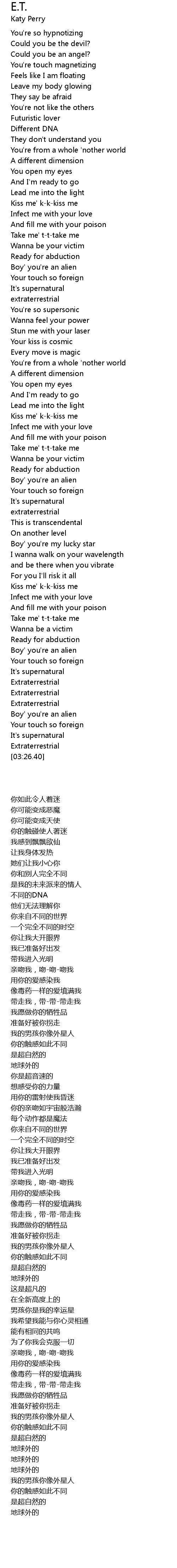 E.T. Lyrics