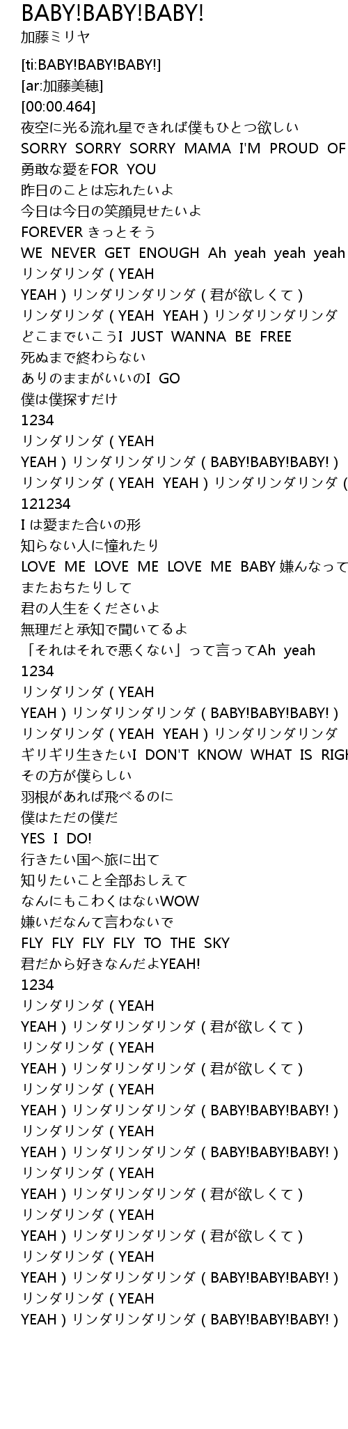 | [01:33.563] | LOVE ME LOVE ME LOVE ME BABY 嫌んなって |