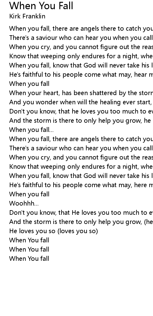 When you fall, there are angels there to catch you when you fall |