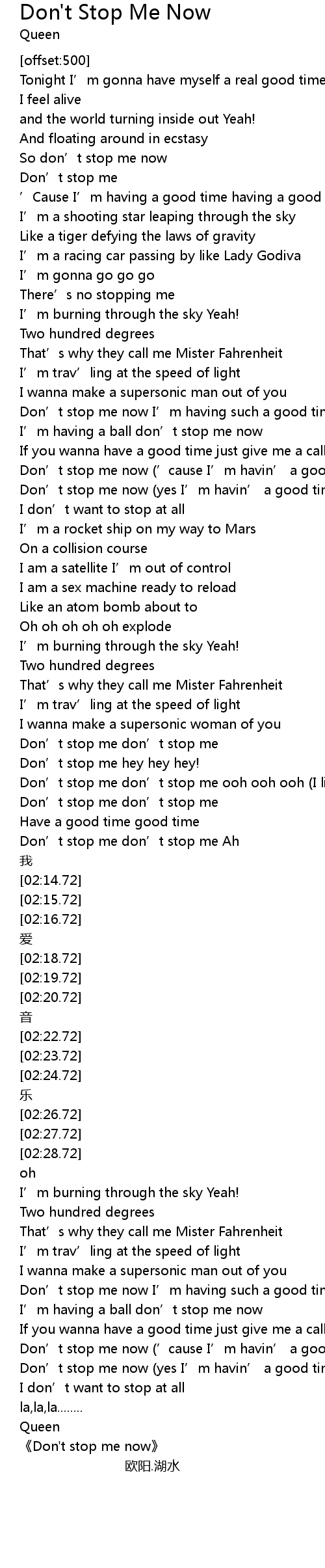 | [02:59.67] | Don' t stop me now yes I' m havin' a good time |