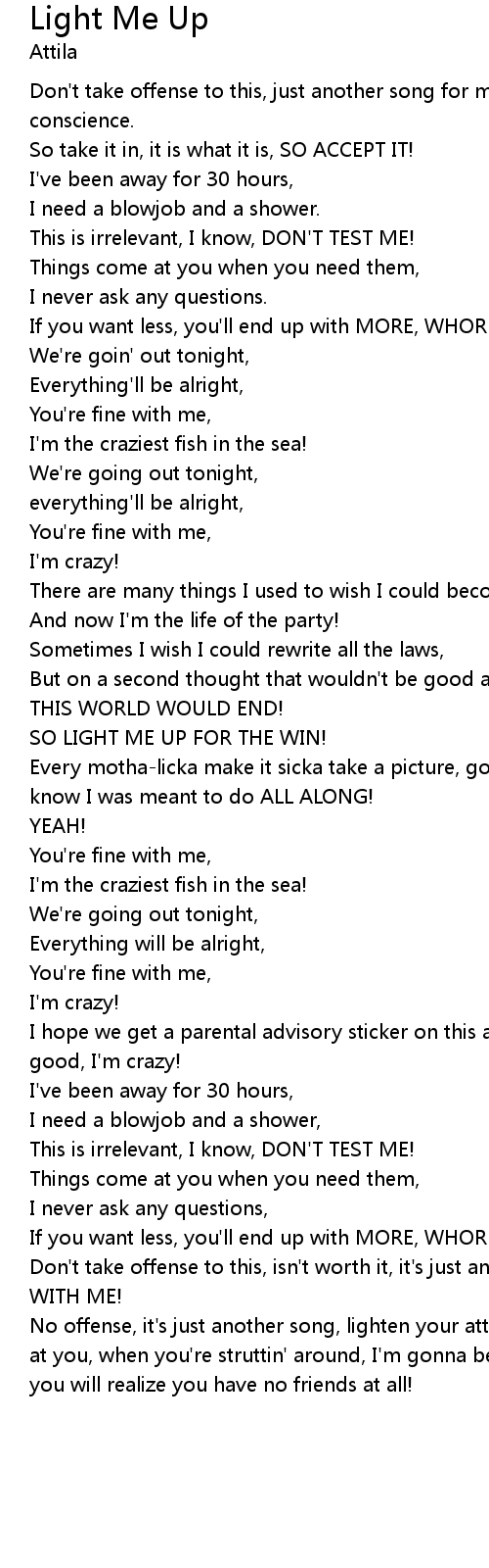 | No offense, it's just another song, lighten your attitude, yeah I'm probably mad at you, when you're struttin' around, I'm gonna be hopin' you fall, until then you will realize you have no friends at all! |