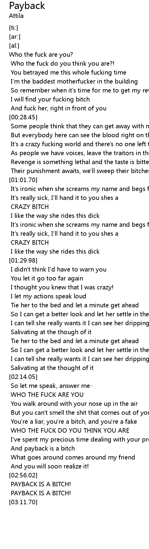 | [03:04.71] | PAYBACK IS A BITCH! |