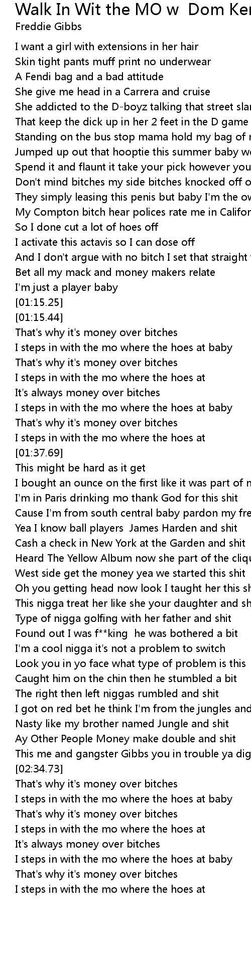 It's always money over bitches |