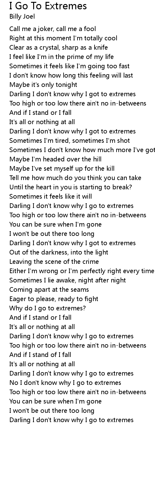 No I don't know why I go to extremes |
