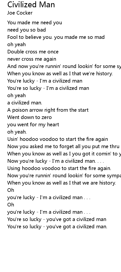 You're so lucky - I'm a civilized man |