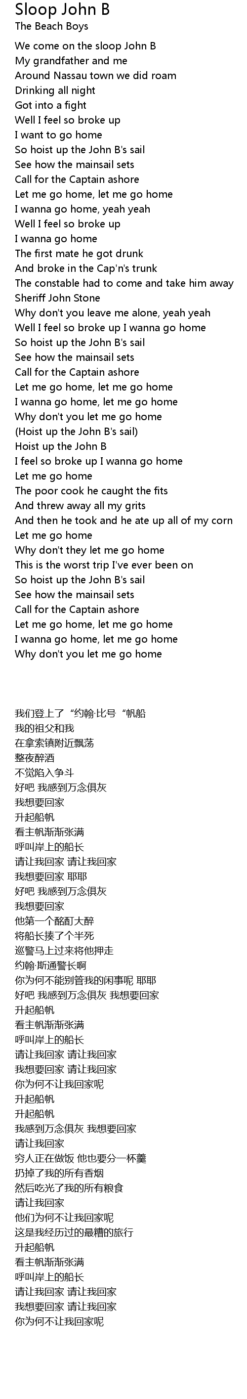 Well I feel so broke up I wanna go home |