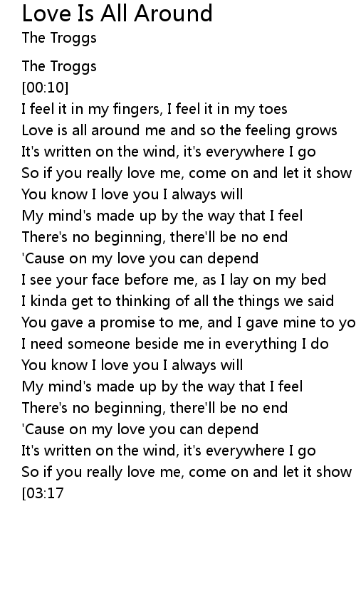 Love is all around me and so the feeling grows |