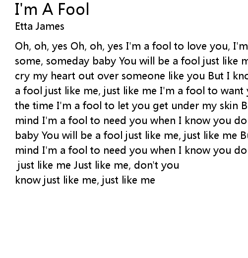 Oh, oh, yes Oh, oh, yes I'm a fool to love you, I'm a fool to care But I know some, someday baby You will be a fool just like me, just like me I'm a fool to cry my heart out over someone like you But I know some, someday baby You will be a fool just like me, just like me I'm a fool to want you when you hate me all the time I'm a fool to let you get under my skin But I can't get you out of my mind I'm a fool to need you when I know you don't care But I know some, someday baby You will be a fool just like me, just like me But I can't get you out of my mind I'm a fool to need you when I know you don't care But I know some, someday baby You will be a fool just like me, [?] just like me Just like me, don't you know just like me, just like me |